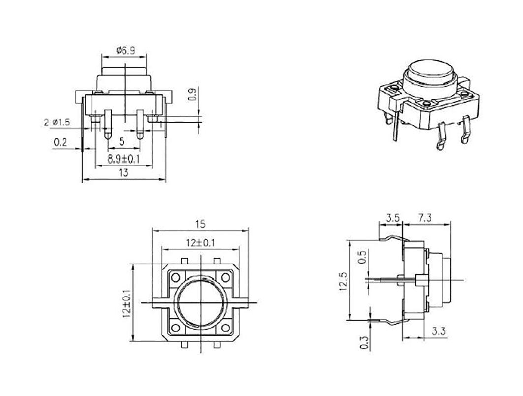 Microîntrerupător TACT; SPST-NO; Poz: 2; 0,05A/12VDC; THT; LED