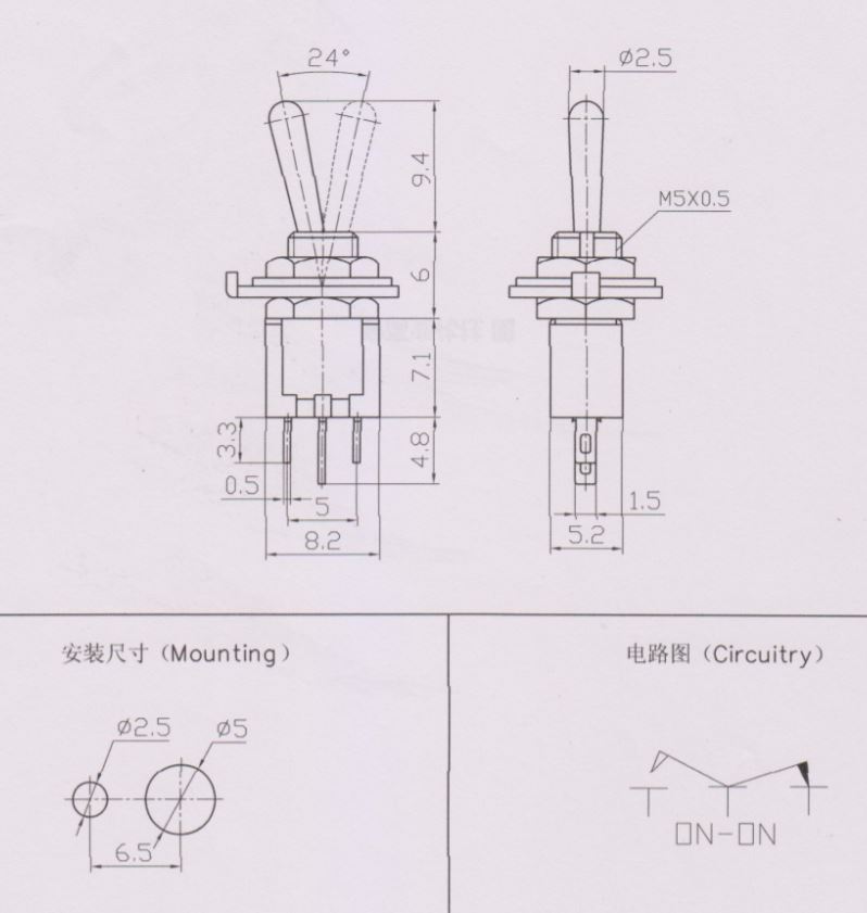 Schalter: Hebelschalter; Pos: 2; SPDT; ON-ON; 1,5A/250VAC; -25÷85°C